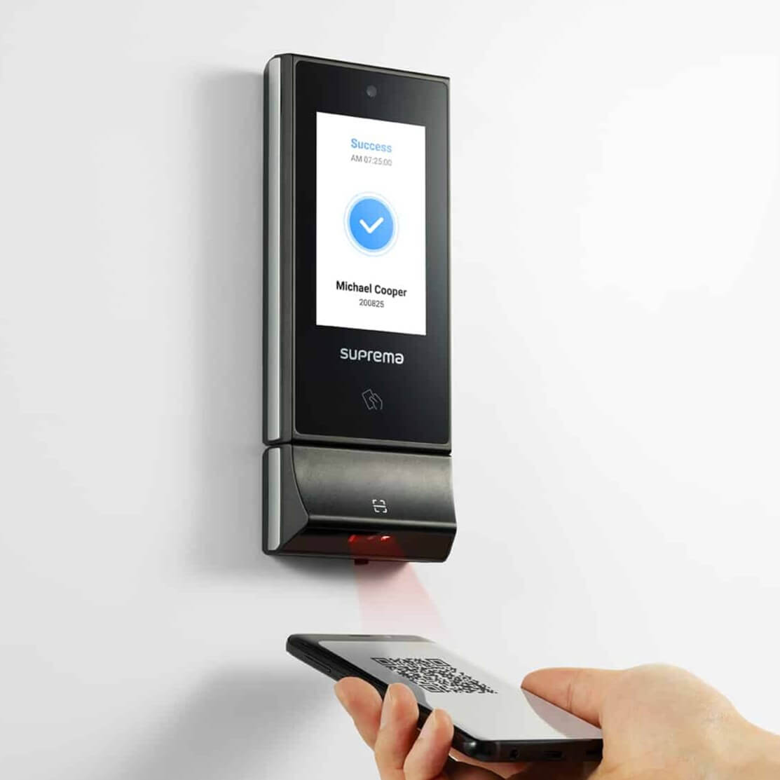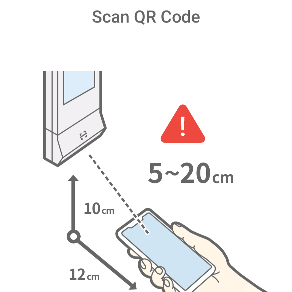 ・認証機の下端から10~15cm離した位置にQRコードを表示し、赤色の光をQRコードの中心に投光する